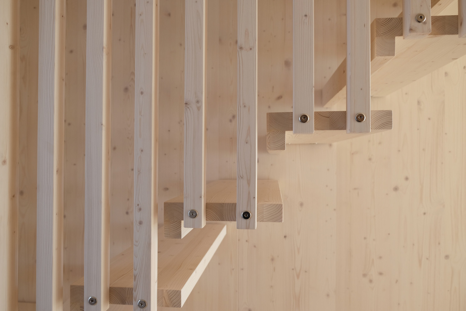 Durch die Wahl natürlicher Materialien entsteht eine Bauweise, die Nachhaltigkeit und hohen Wohnkomfort verbindet. Hervorzuheben sind die Küchen und Möbel, die leimfrei sind und aus einheimischem Mondholz entstanden. Die Umsetzung erfolgte in Zusammenarbeit mit Schmidlin Holzbau, Steinen.
